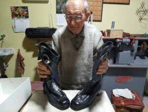 „Valamikor sor állt az ajtóm előtt: hétfőn, kedden, szerdán vállaltam arra a hétre a munkát, utána már csak a következőre. Szombaton és vasárnap is dolgoztam. Ma már kevés a munka, kihal ez a szakma. Manapság sok az olyan lábbeli, amit már nem is érdemes javítani. A bőrcipő jó befektetés, érdemes rá áldozni: egészségesebb a lábnak, és tartósabb, javíthatóbb is. De a lábbelit ápolni is kellene, ezt ma már nem nagyon csinálják az emberek. Én viszont minden lábbelit először is megmosok, a végén pedig kipucolok attól függetlenül, hogy ezt kérik-e, vagy sem, ez is benne az árban.”