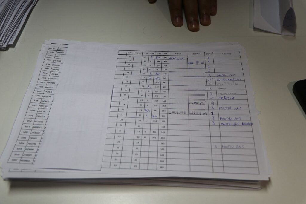 „Huszonnégy órával a választások után egy polgár hozott egy hátizsákott, amelyben az SNS párhuzamos választói névjehgyzékkel dolgozó aktivistái által használt anyagok voltak. Ez egy kivonat a 163-as szavazókör választói névjegyzékéből, benne a szavazásra való felhívásokkal” – mondta Marija Srdić, a Bravo mozgalom képviselője.