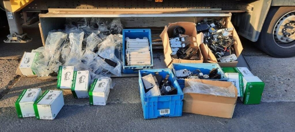 Habár a sofőr azt mondta, hogy a bejelentett árun kívül nem szállít más, a raktérből, a kabinból, valamint a kamion szerszámos ládáiból Audi, Volkswagen és Mercedes márkájú autókhoz való alkatrészek kerültek elő, eredeti csomagolásban.