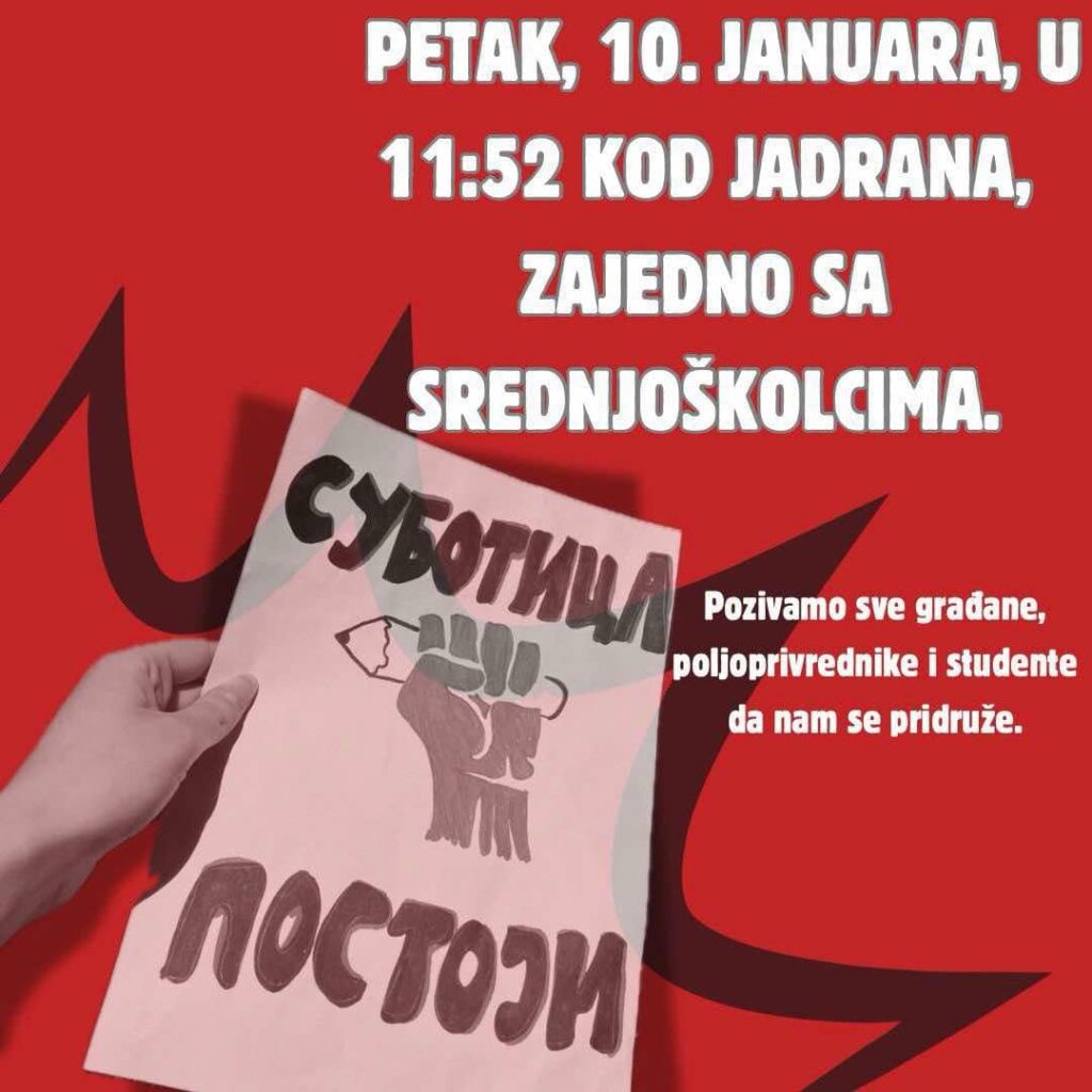 Pénteken, január 10-én, 11 óra 52 percre a Jadran épülete elé várják az egyetemisták a középiskolásokat, földműveseket, polgárokat, mindenkit, aki egyetért az egyetemi hallgatók követeléseivel.