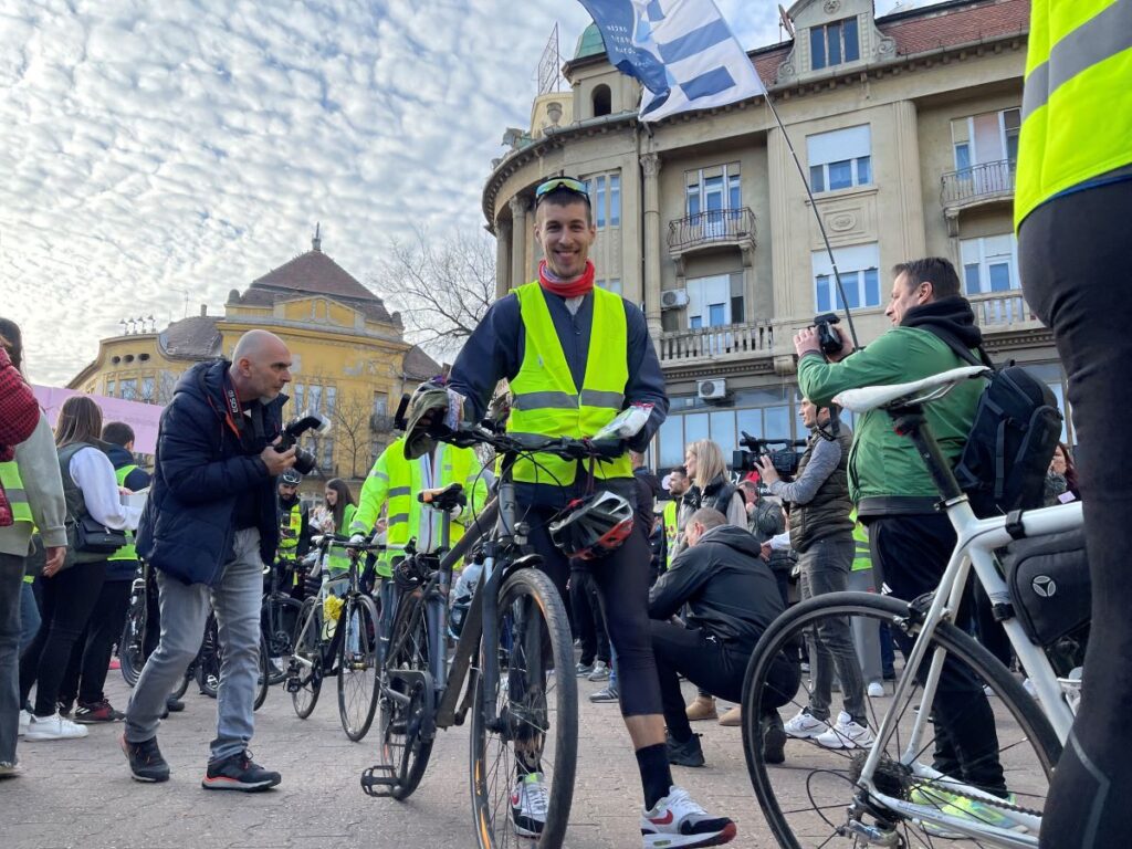Éppen kisütött a nap, amikor megérkeztek Szabadka központjába azok az egyetemisták és kísérőik, akik reggel nyolc órakor indultak Újvidékről, hogy mintegy tíz nap alatt megtegyenek ezerháromszáz kilométert és eljussanak Strasbourgig, ott pedig felhívják a nemzetközi közvélemény figyelmét a Szerbiában zajló eseményekre.