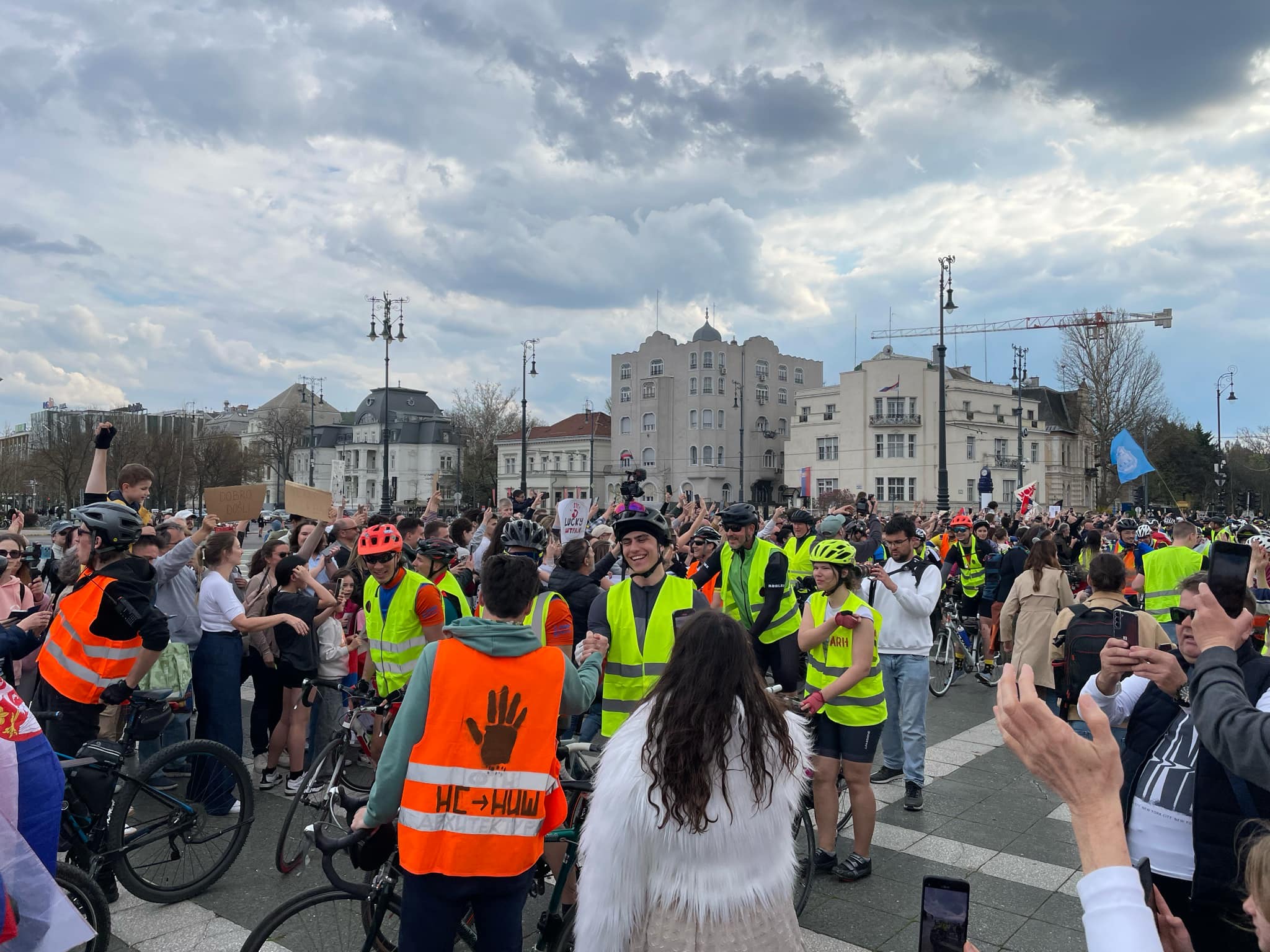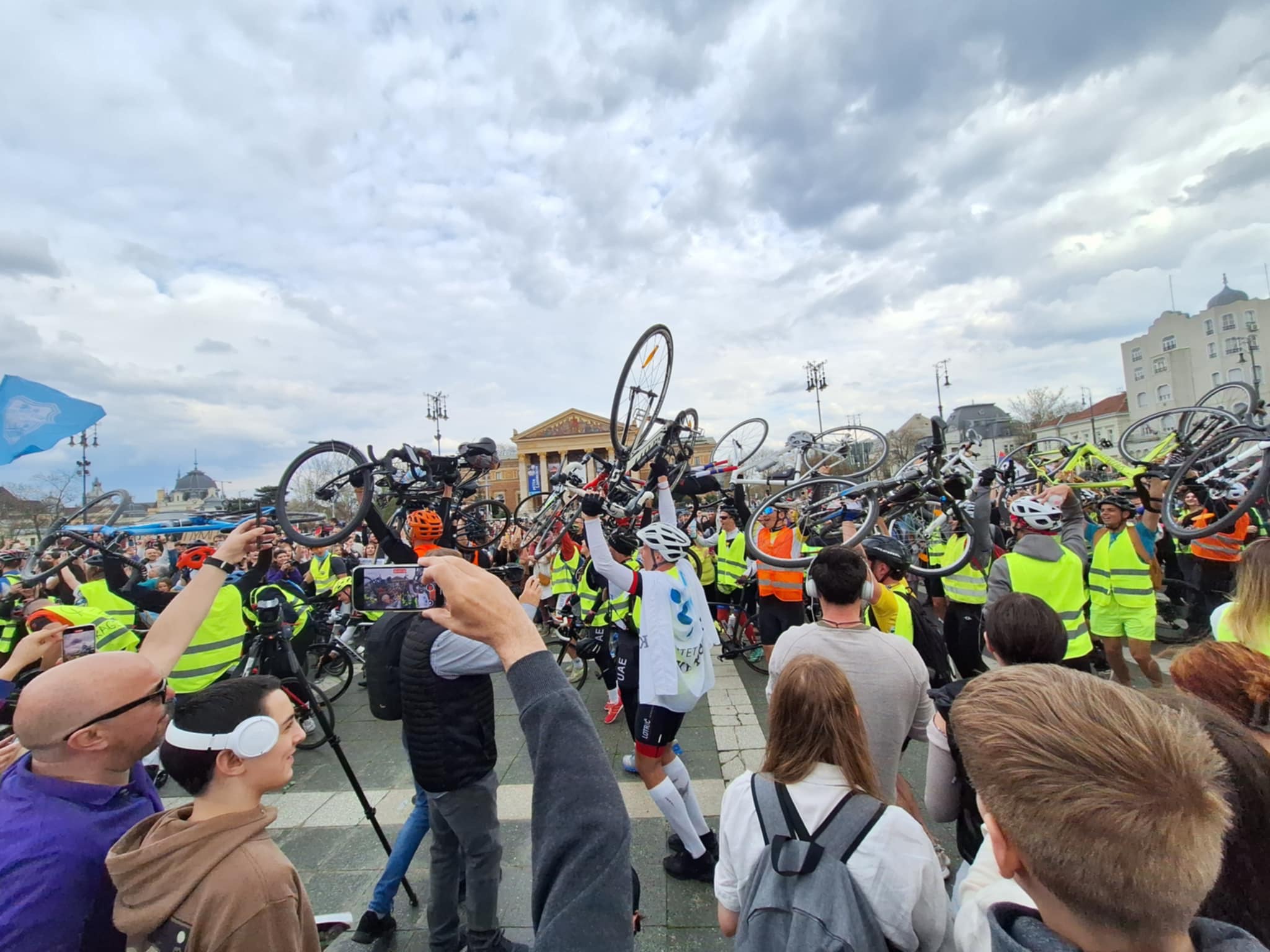 „Terített asztal, sok szeretet, szolidaritás és nagyrabecsülés várta azokat a bátor fiatalokat, akik Újvidékről indultak biciklivel Strasbourgba, hogy kiálljanak a demokrácia és a szabadság mellett. Szerbiában fél éve minden héten, minden nap küzdenek az elnyomás ellen. Budapesten is arról beszéltek, hogy nem adják fel a harcukat. Ahogy elhangzott a téren: «Nem kérünk sokat, csak a félelem és cenzúra nélküli élet jogát”. Megható és felemelő érzés volt együtt lenni velük a Hősök terén – igazi hősök, akik példát mutatnak mindannyiunknak» – írta Karácsony Gergely, Budapest főpolgármestere, aki maga is kerékpárral érkezett szombaton a Hősök terére, hogy fogadja a szerbiai egyetemistákat.