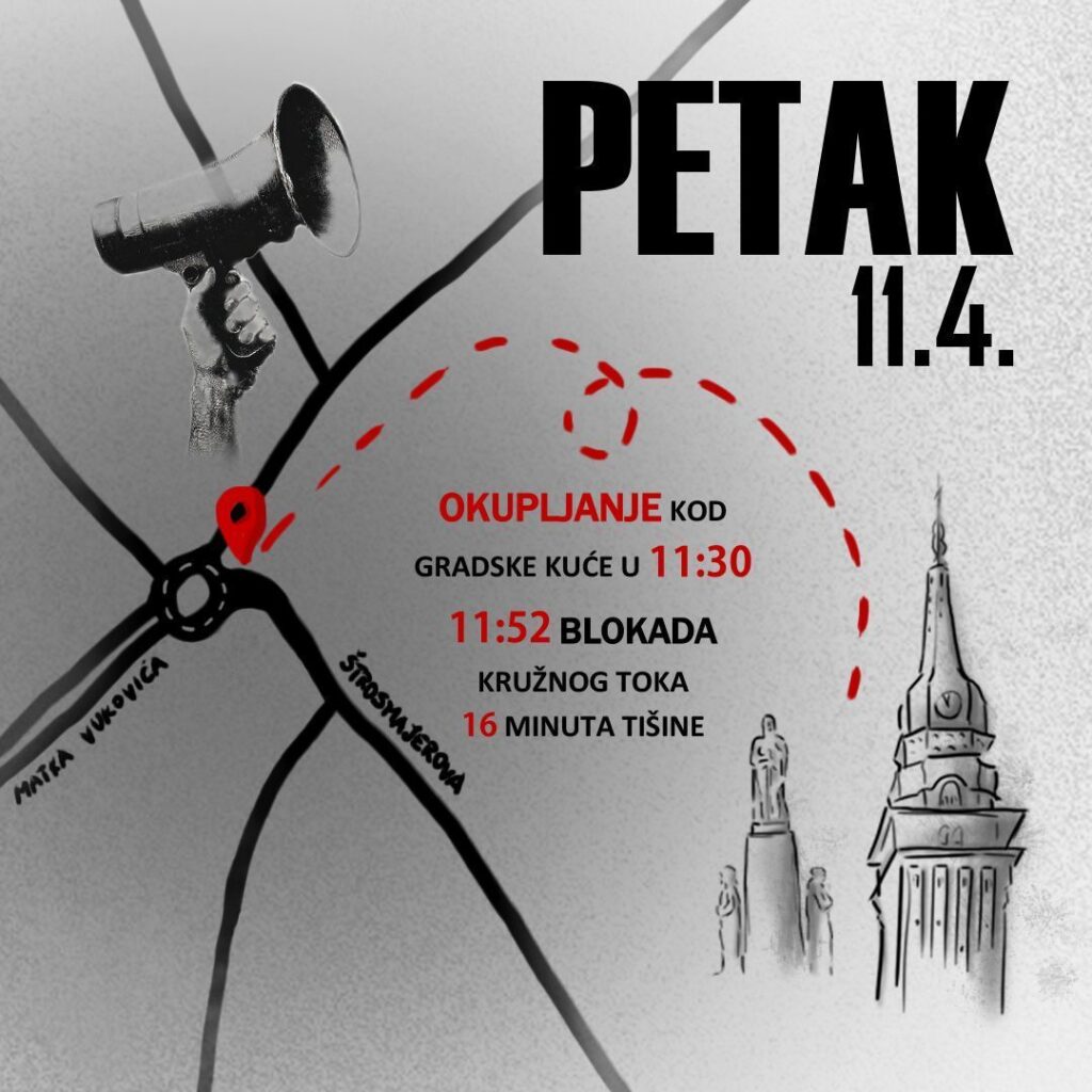 Az egyetemisták szerdán közzétett felhívásában arra kérik a polgárokat, hogy 11 óra 30 perckor a városházánál gyülekezzenek, a 16 perces csendet 11 óra 52 perctől pedig a Strossmayer utcai körforgalomnál tartják majd meg, vagyis erre az időre lezárják ezt a kereszteződést.