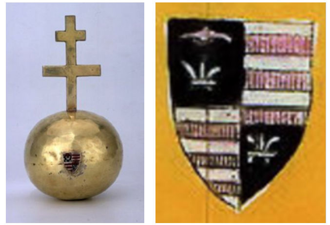 Fenn látható az országalma XVIII. századi, valamint a jelenlegi fényképe, mellé pedig az országalmán látható címer képét helyeztem el. Érdekes kérdés, hogy miért és hogyan kerültek egy Anjou-címer részei ebbe címerbe, amely Árpád-sávokkal is ellátott. A nyilvánosan is megtalálható magyarázat engemet nem győzött meg!