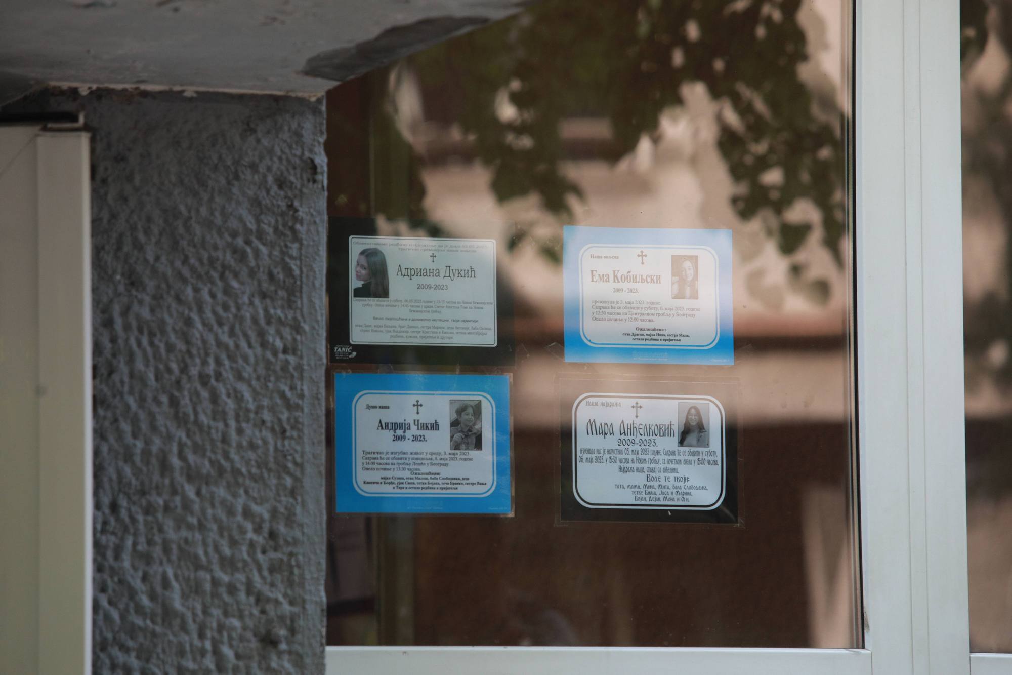 Beograd, 5.05.2023. – Ucenici, nastavnici i roditelji iz celog Beograda upisuju se u knjigu zalosti koja je danas otvorena na glavnom ulazu Osnovne skole „Vladislav Ribnikar” u Beogradu.U oruzanom napadu ucenik sedmog razreda te skole, ubio osam ucenika i radnika obezbedjenja a ranio sest ucenika i nastavnicu. (BETAPHOTO/MILOS MISKOV)