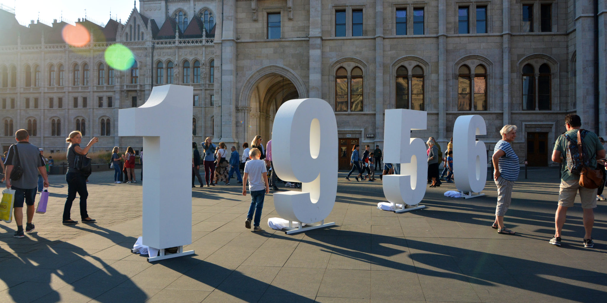 A Parlament előtt az 1956 installációnak van a legnagyobb sikere, mindenki itt fotózkodik (Fotó: Szappanos Veronika, SZMSZ)