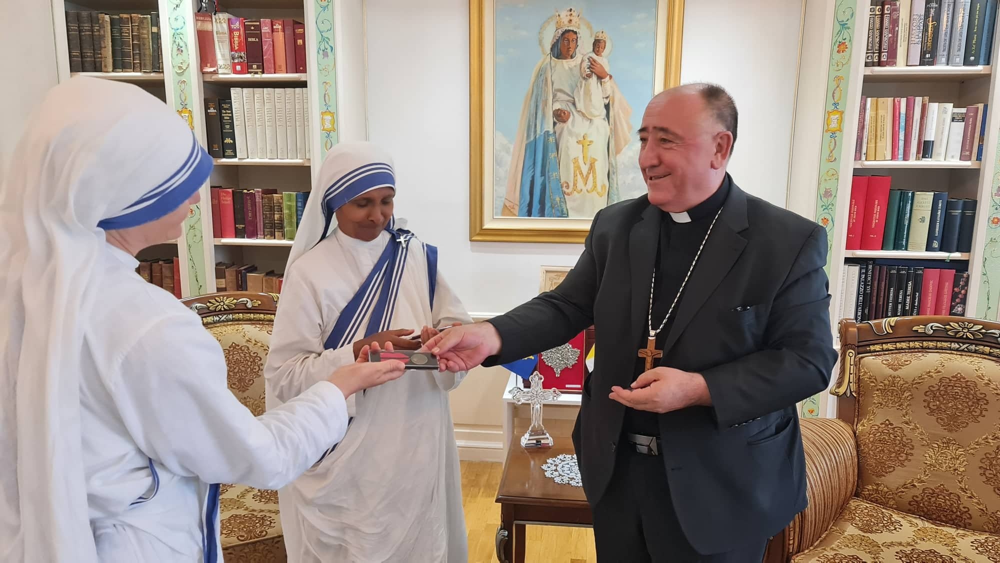 Dodë Gjergji prizreni és pristinai püspök szerzetes nővérek társaságában (Fotó: A püspök nyilvános Facebook-oldala)