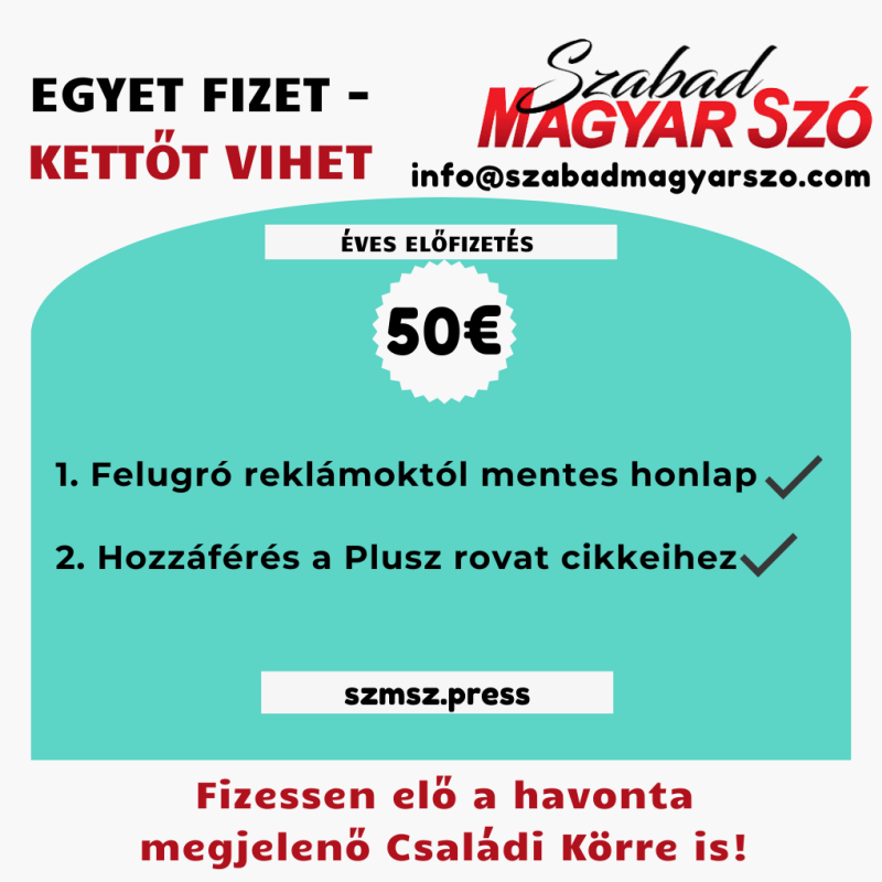 Az alábbi előfizetéssel 12 hónapra hozzáférhetővé válik a Szabad Magyar Szó PLUSZ fizetős tartalma és eltűnnek a felugró reklámok.