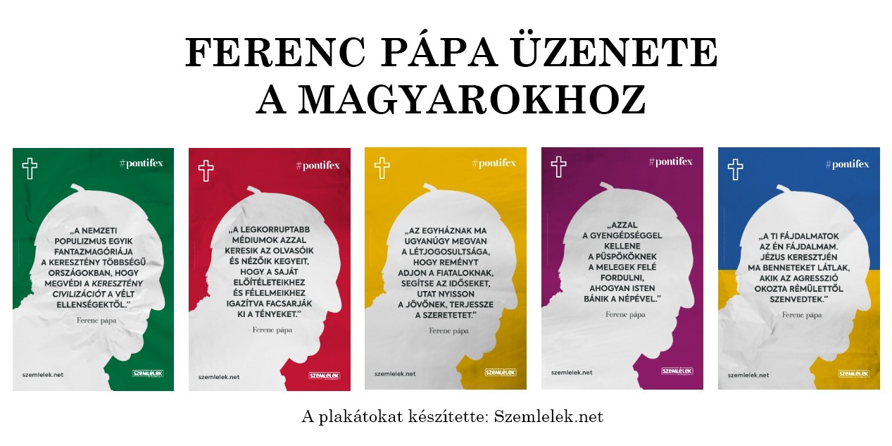 Ferenc pápa üzenete a magyarokhoz (Montázs a szemlelek.net plakátjaiból)
