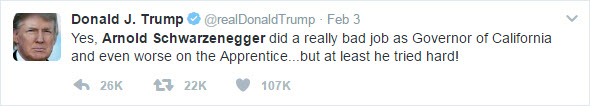 Trump a Twitteren vágott vissza Schwarzeneggernek