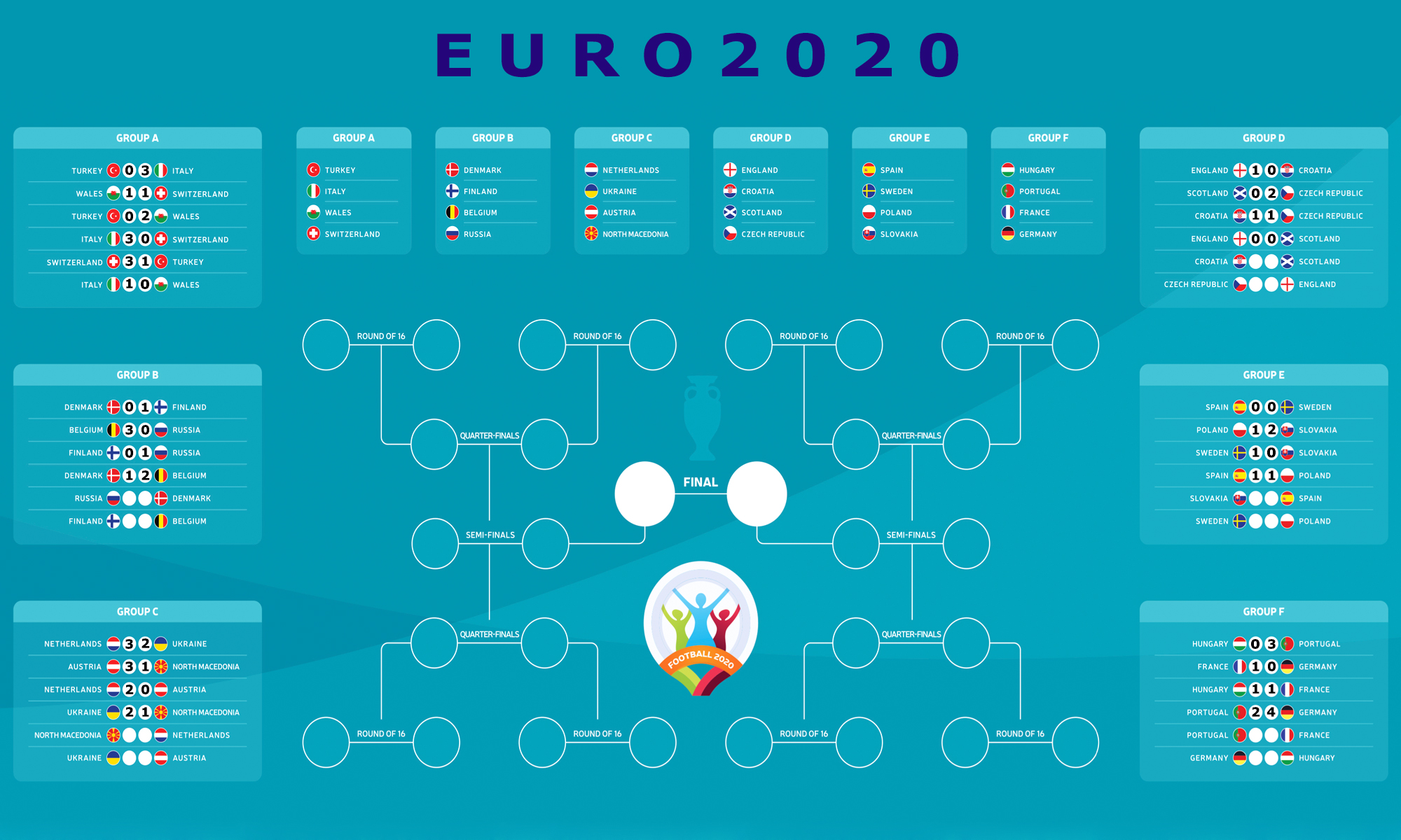 UEFA 2020 versenynaptár és eredmények (Infografika: Shutterstock/SZMSZ)
