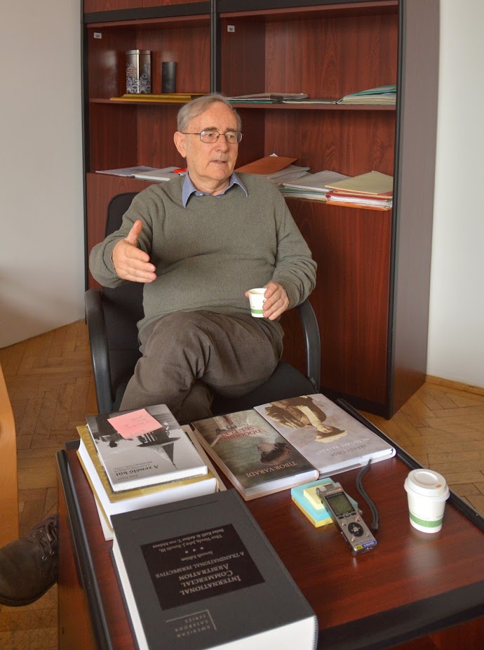 Dr. Várady Tibor legújabb könyveivel közép-európai egyetemi irodájában, Budapesten. (Fotó: Szappanos Veronika)